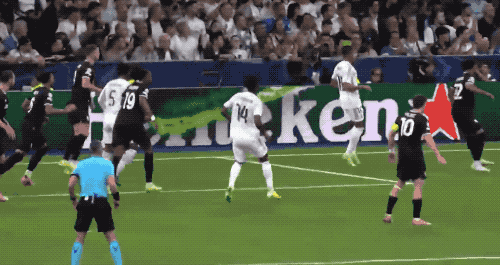 随着比赛的进行,皇马运动战两翼齐飞,尤文图斯的防线受到了严峻的考验。
